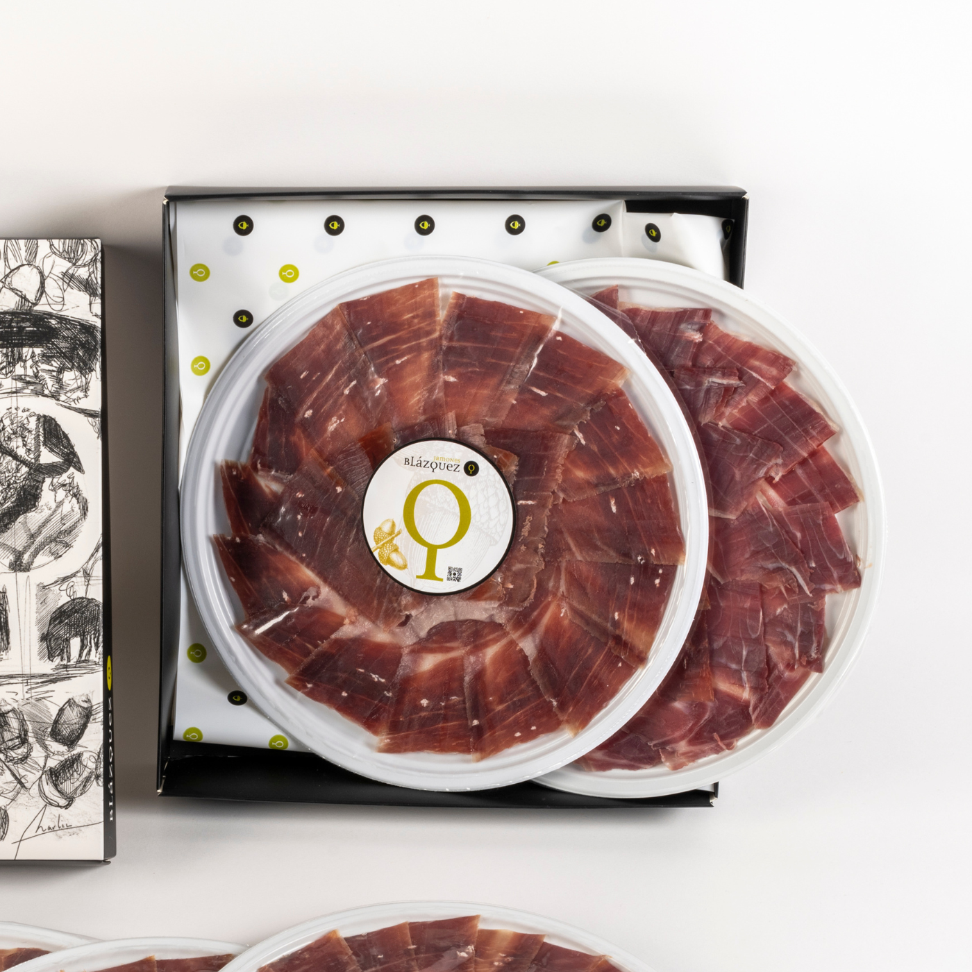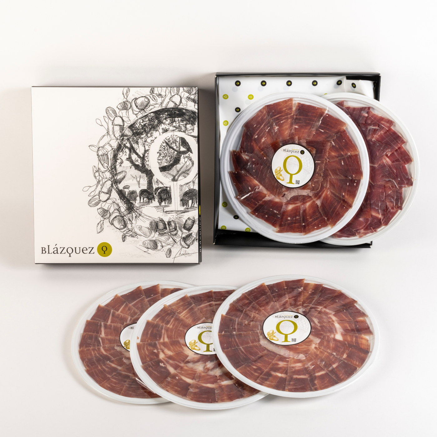 Emplatar el jamón de bellota ibérico 50% raza ibérica cortado a mano de Blázquez ahora es muy fácil.